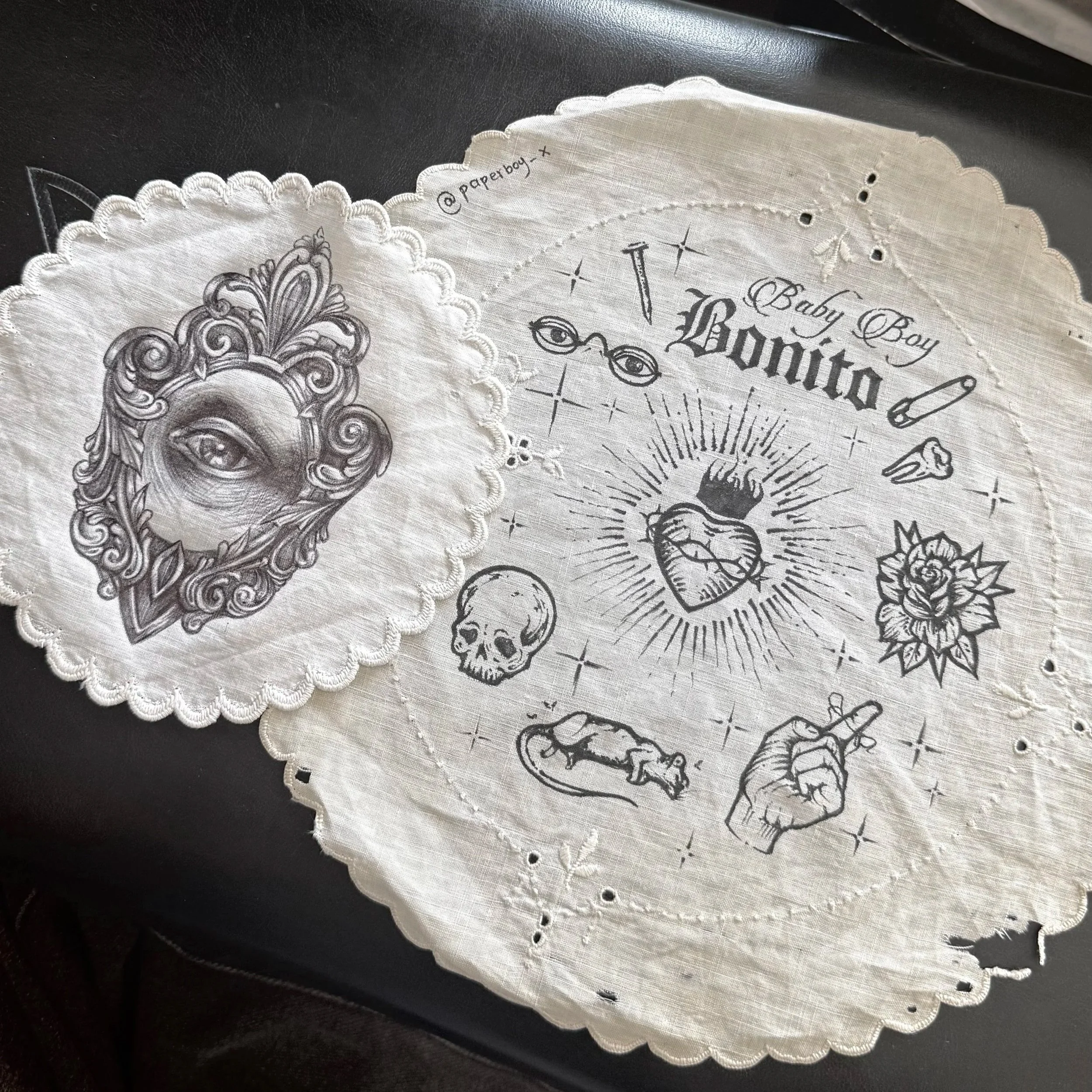 Their work focuses on Latinx motifs, vintage rubber stamps, and anatomical illustrations. Their practice serves to use tattooing as a medium to help others reclaim thier bodies, providing comfort, saftey, and body neutrality throughout their tattoo work.